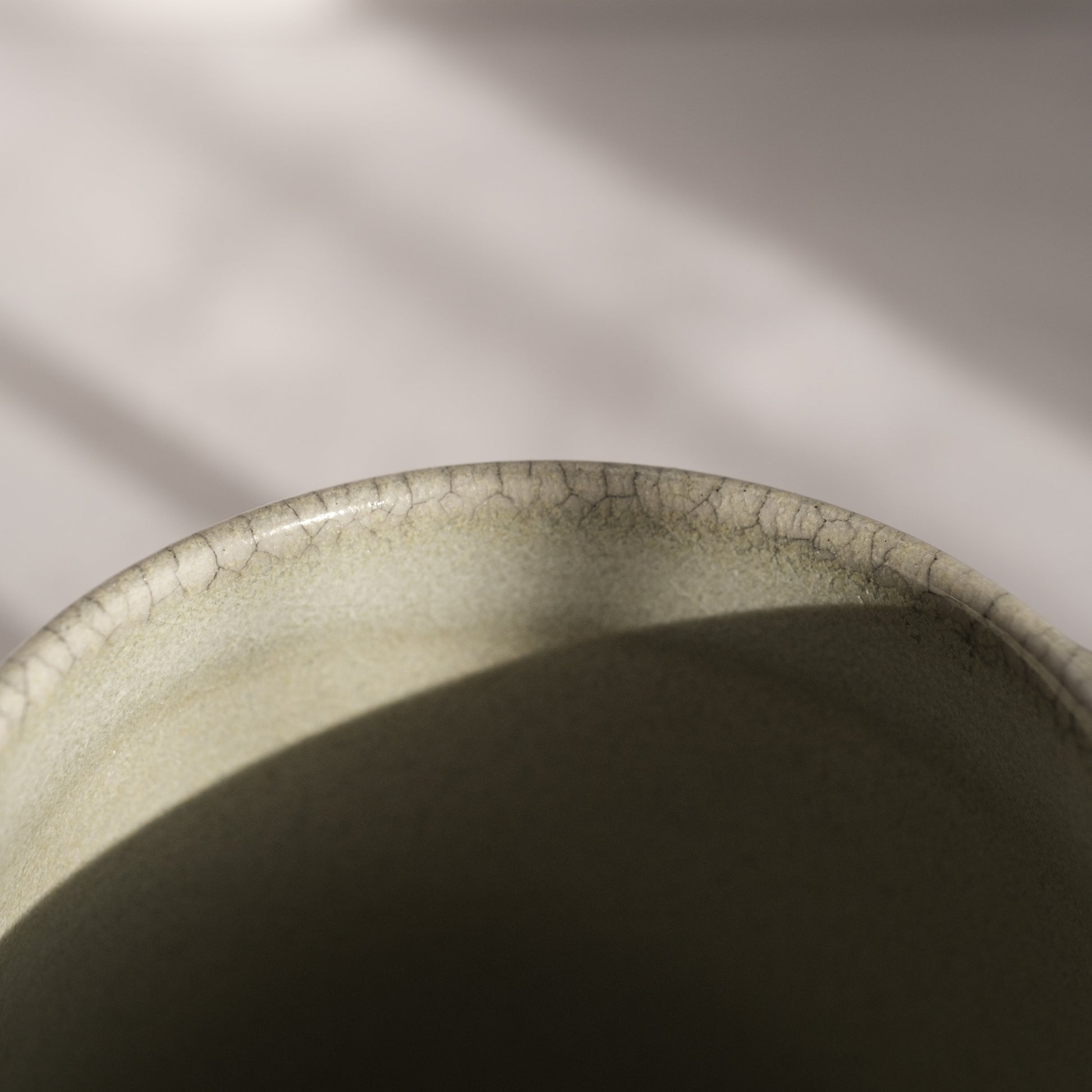 大堀相馬焼の特徴のひとつ「青ヒビ」と呼ばれる貫入模様をアレンジした、普段使いにぴったりのマグカップです。